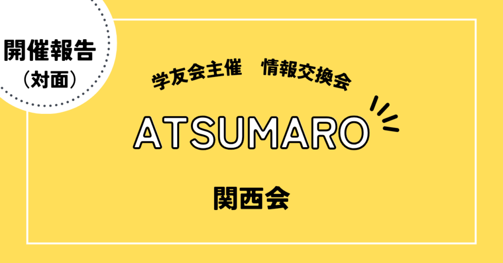 - 【開催報告】オンライン交流会を開催しました去る2025年10月18日(土)13:00より、学友会主催「オンライン交流会」を開催しました。今回は、54名(運営スタッフ含む)の方々にご参加いただきました。 学友会会長挨拶で開会した交流会は、学友会活動やATSUMAR […]