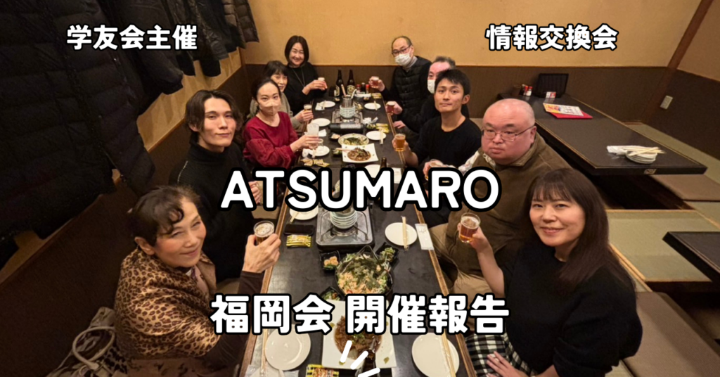 - 【開催報告】学友会主催「ATSUMARO」福岡会を開催いたしました2026年1月11日(日)、福岡市内の「全席個室 楽蔵‐RAKUZO‐ 博多筑紫口店」にて、学友会主催の情報交換会「ATSUMARO」を開催いたしました。 ■ 開催概要 日時: 2026年1月11日(日)17:30~19 […]